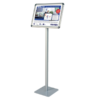 Steht immer richtig, informiert punktgenau! Mit den eleganten und praktischen Infodisplays übersieht keiner Ihrer Kunden Ihre Aushänge! Silbereloxierte Aluminium-Klapprahmen für einfaches und schnelles Wechseln der Aushänge. Die Antireflex-Schutzfolie schützt die Inhalte. Der Eisenfuß mit Kunststoffabdeckung (28 x 28 cm) sorgt für einen sicheren Stand.