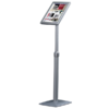 Das universale Infodisplay mit cleveren Funktionen: Höhen- und Formateinstellung sowie eine Winkeleinstellung, hiermit lässt sich der optimale Sichtempfang einstellen. Silbereloxierte Aluminium-Klapprahmen für einfaches und schnelles Wechseln der Aushänge. Die Antireflex-Schutzfolie schützt die Inhalte. Der Eisenfuß mit Kunststoffabdeckung sorgt für einen sicheren Stand.