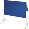 Die günstige Alternative! Doppelseitig nutzbare Oberfläche, erhältlich mit lackierter Schreiboberfläche oder pinnbarer Karton- bzw. Filzoberfläche in blau oder grau. Die Tafeln sind für den stationären Einsatz als einteilige Ausführung und für mobile Präsentationen als klappbare Ausführung erhältlich. Leicht, aber robust und standfest. Standbeine mit geraden Füßen (Tiefe: 56 cm) und Rahmen aus weißem Metall. Tafelgröße: 150 x 120 cm (HxB). Gesamthöhe: 190 cm.