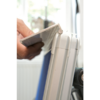 Die Profile von Systemleisten und Tafelrahmen sind so konstruiert, dass die Tafeln einfach eingehängt werden. Die integrierte Magnethaftleiste ermöglicht das saubere, beschädigungsfreie Anbringen von Zeichnungen. Mit dem Systemrahmen sind alle Tafeln ganz nach Bedarf im Hoch- oder Querformat einhängbar.