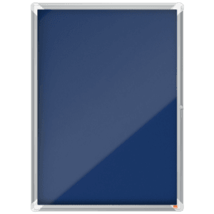 Abschließbarer Schaukasten für den Innenbereich mit Filzpinnwand, Schiebetür aus 4-mm- Sicherheitsglas und Eckmontage. Größe: 12 x A4, 92,5 x 97,0 cm